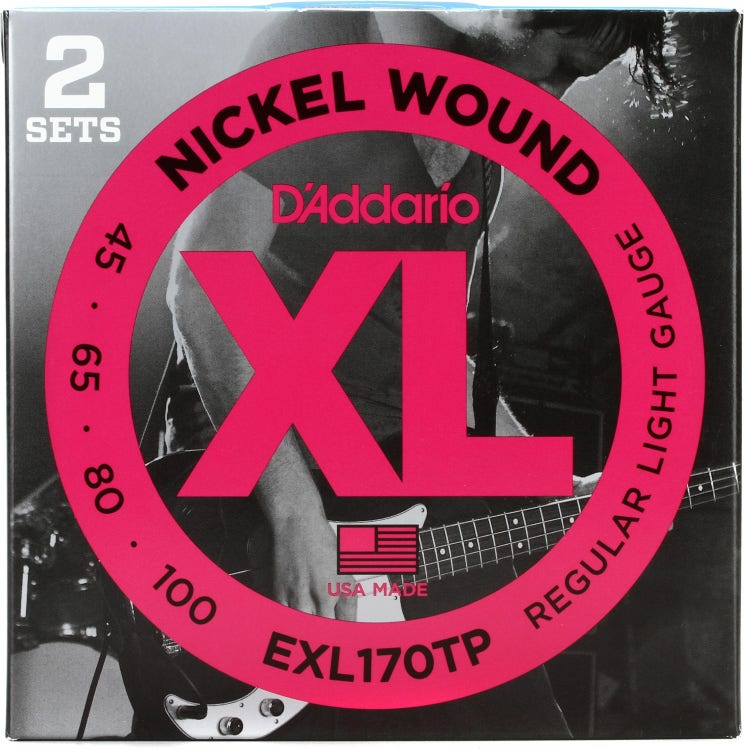 D'Addario EXL170 Nickel Wound Bass Guitar Strings - .045-.100 Regular Light Long Scale (2-pack)
