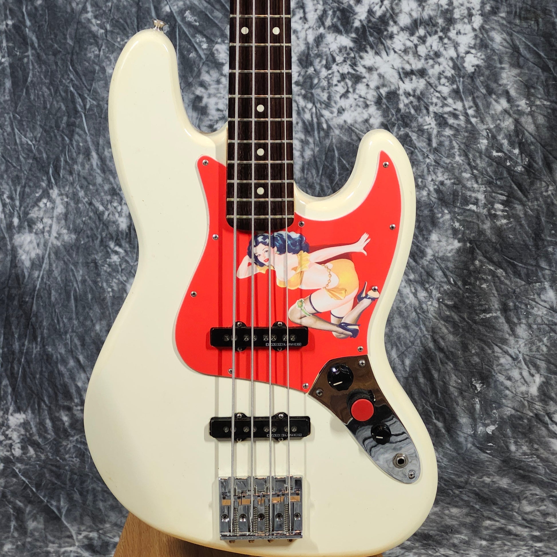 Bass is in good condition, and does have a few small blemishes. Pickups have been changed to Seymour Duncan Basslines, bridge is a Badass, and pickguard is unknown.