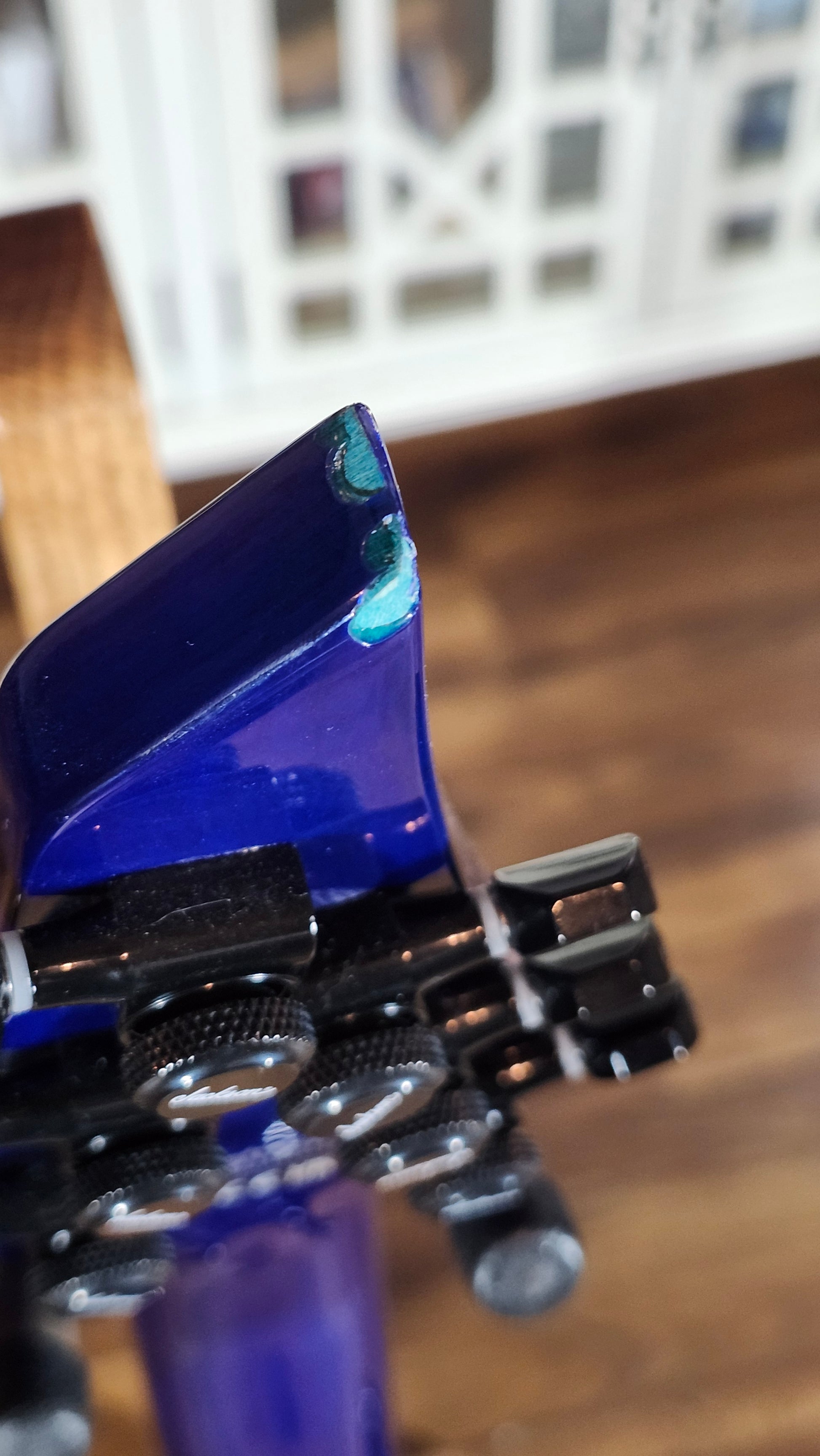With the exception of the finish damage at the tip (wood is fully intact), the guitar is in very good condition and shows almost no signs of use. Includes an aftermarket case.
